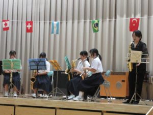 音楽会の中では、総合文化部の皆さんが、金管楽器の演奏を披露してくれました。