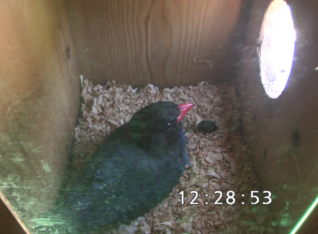ブッポウソウのくちばし先、何かを吐き出しました。