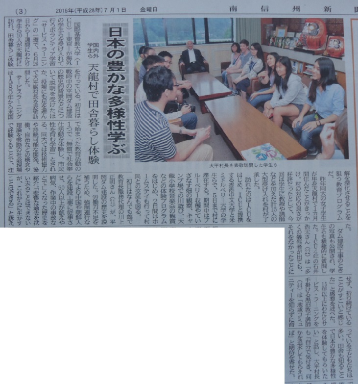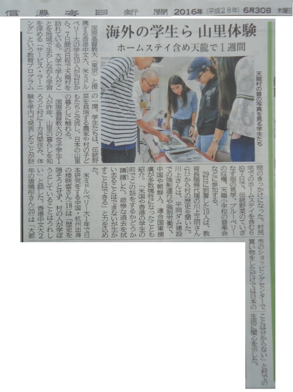 ◆交流事業について ミドルベリー大学日本校のホームページで天龍村との交流について紹介いただきました。