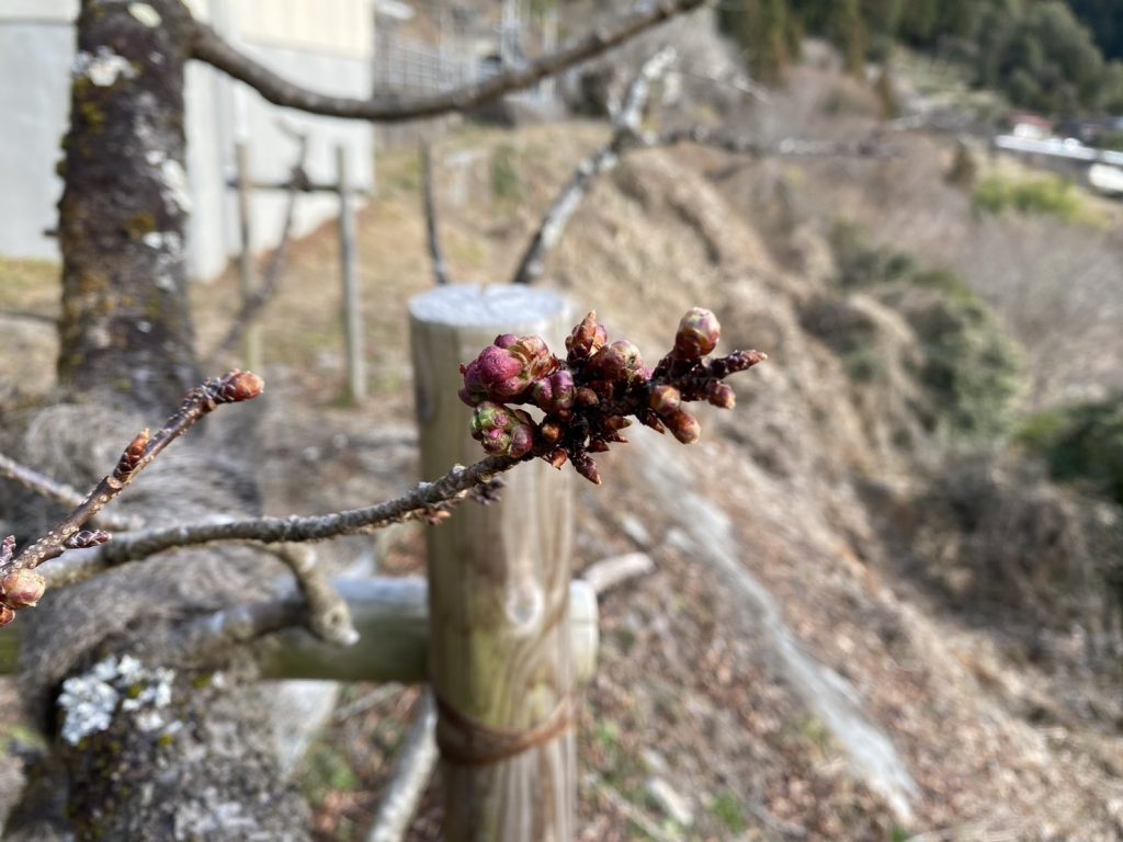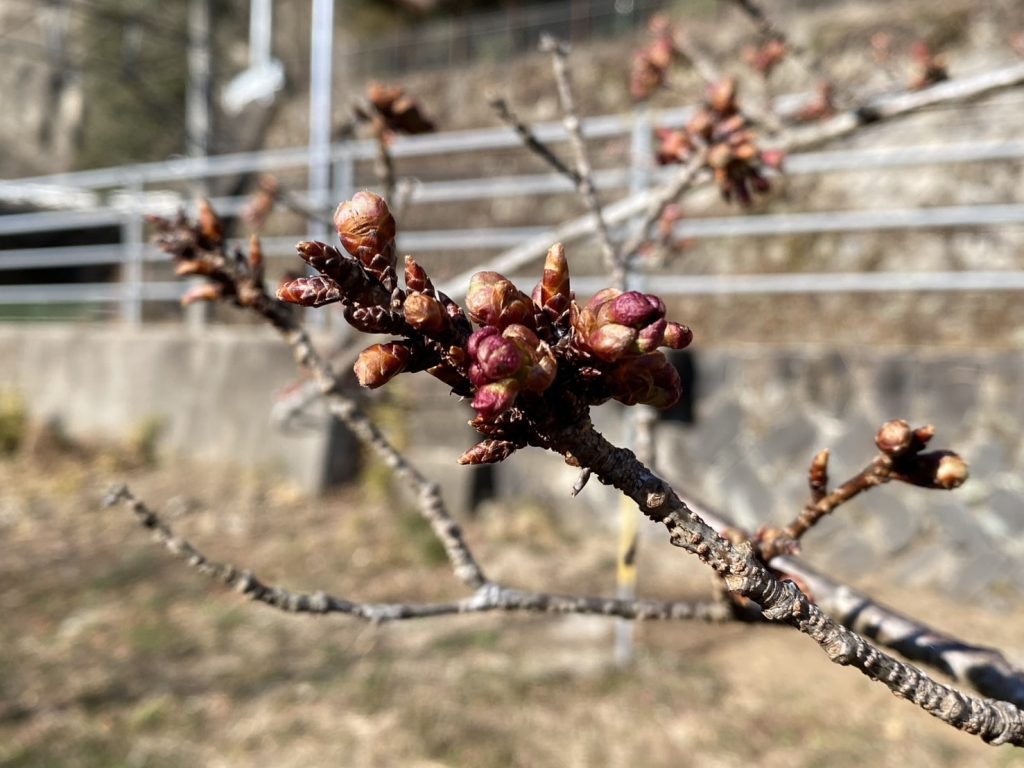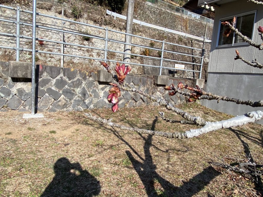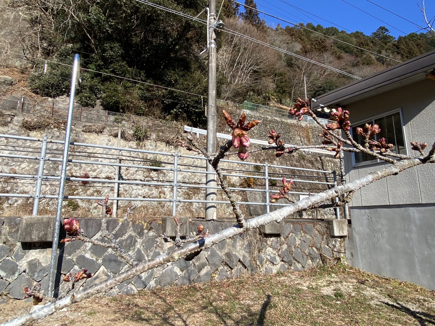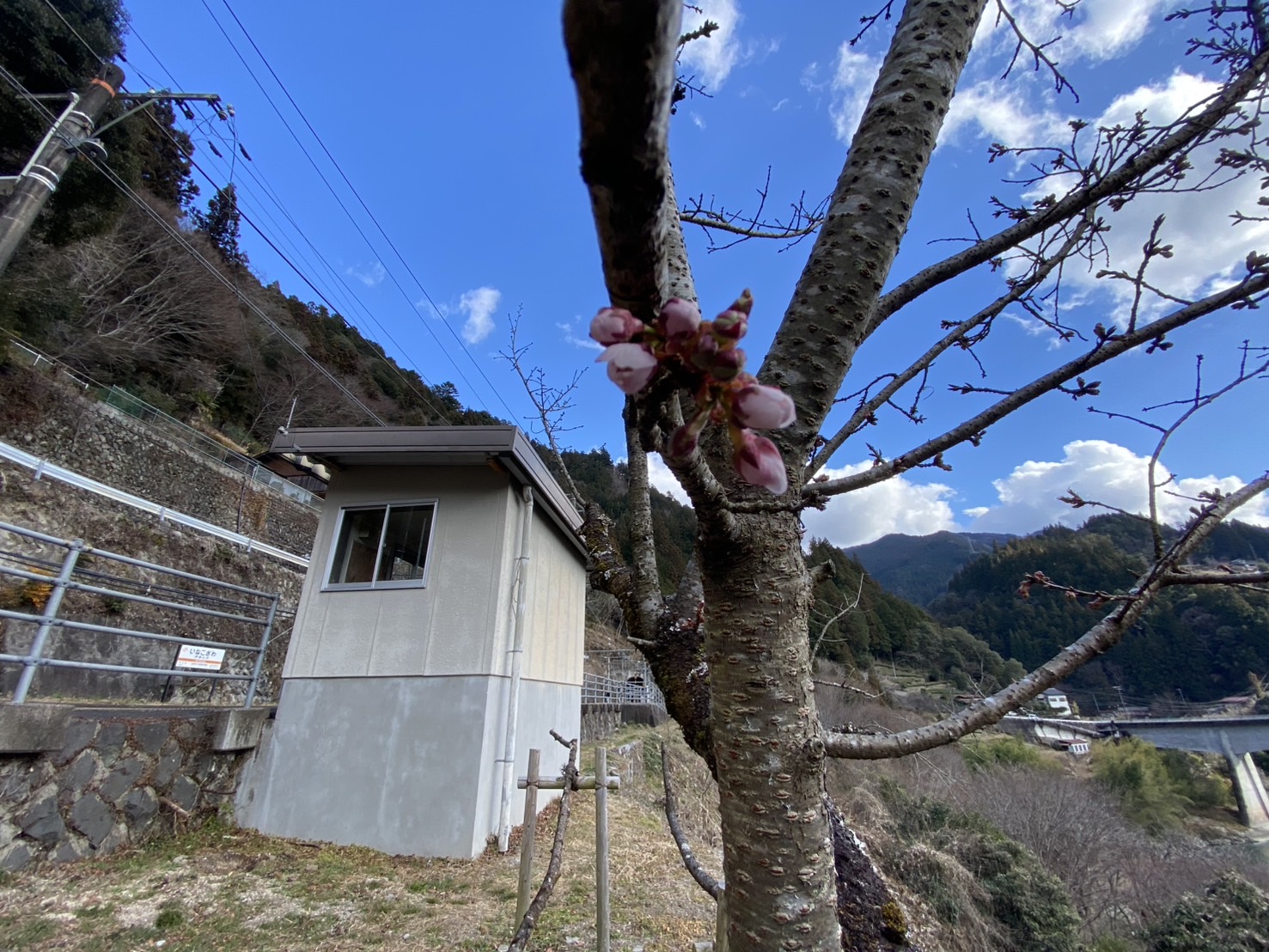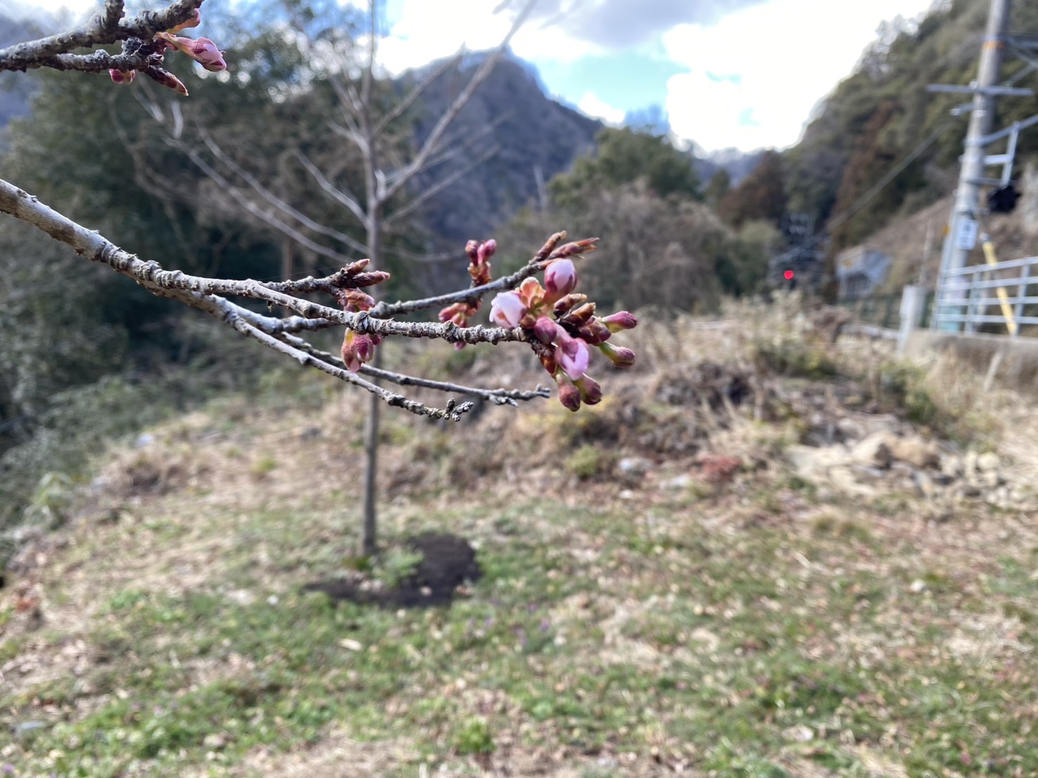 JR伊那小沢駅の構内にある約5本の「カンザクラ」は、信州でもいち早くピンク色の花を咲かせ、春の便りを告げてくれます。