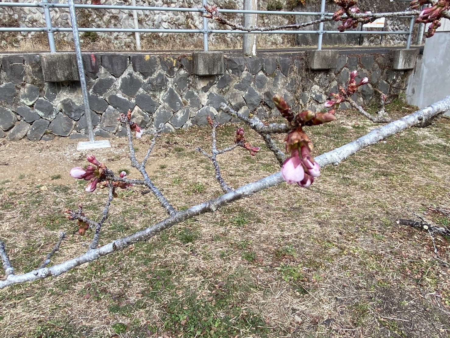 1936(昭和11)年に三信鉄道の伊那小沢駅が開業したときの記念として三本のカンザクラが植えられたとされています。