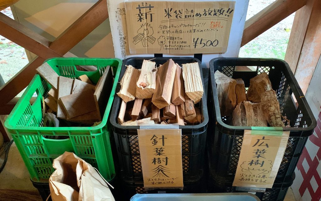 針葉樹、広葉樹好きな薪を袋に詰め放題。