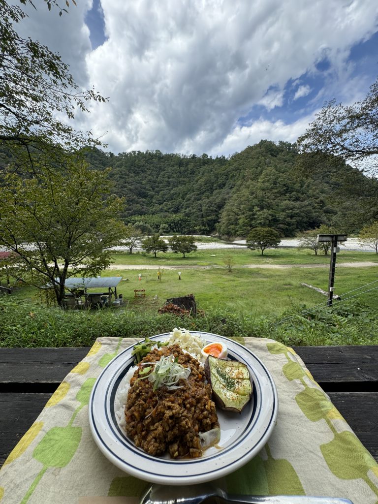 キャンプサイトを眺めながら、ランチやお茶ができます。