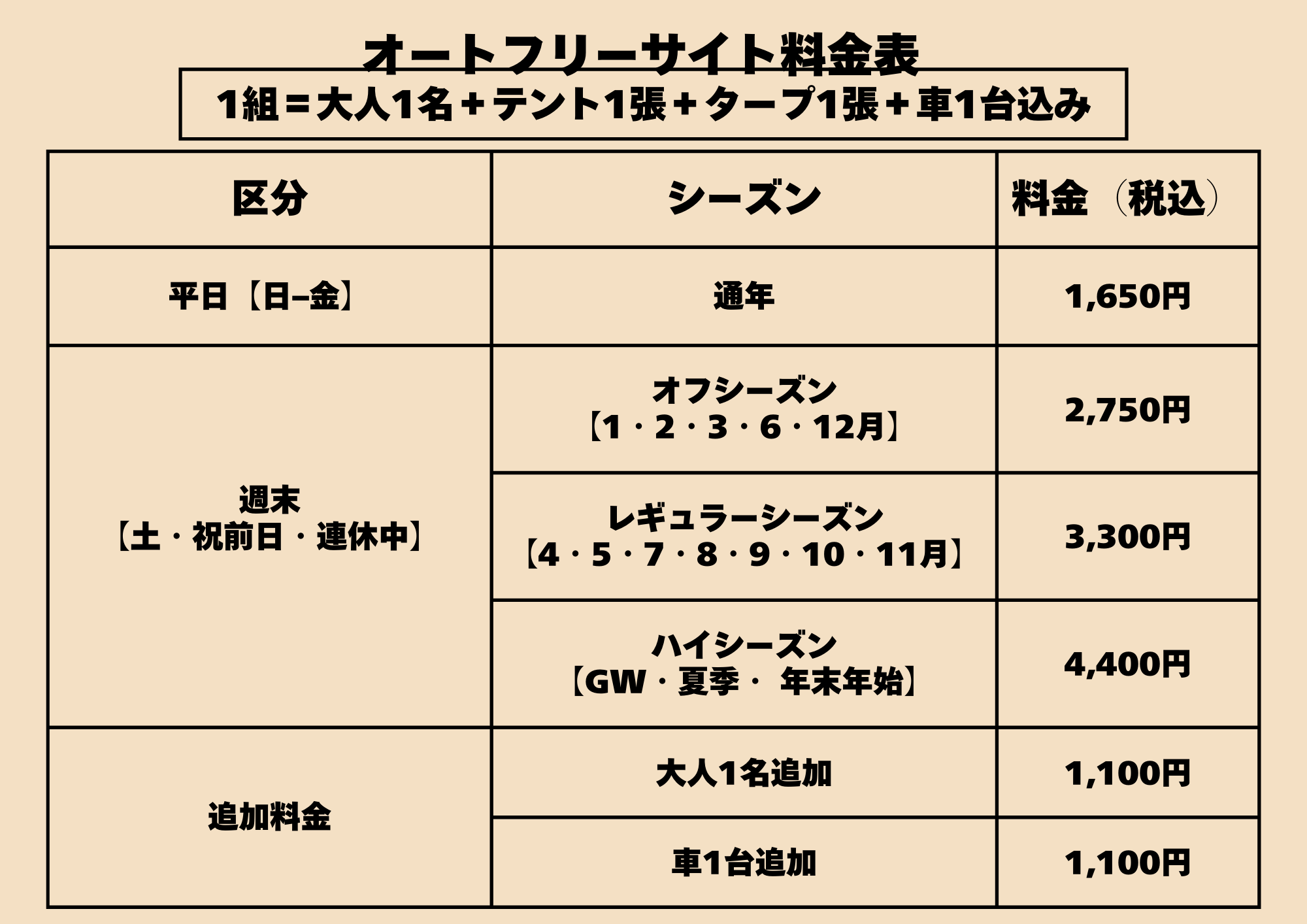 静かなオフシーズンの川辺で、ゆったりとした冬キャンプもお楽しみいただけます。