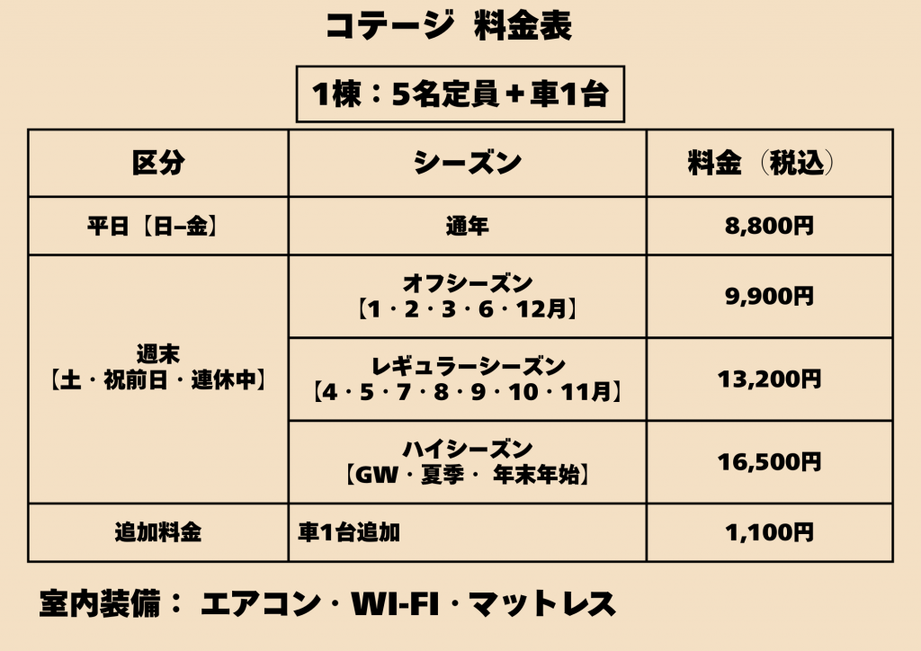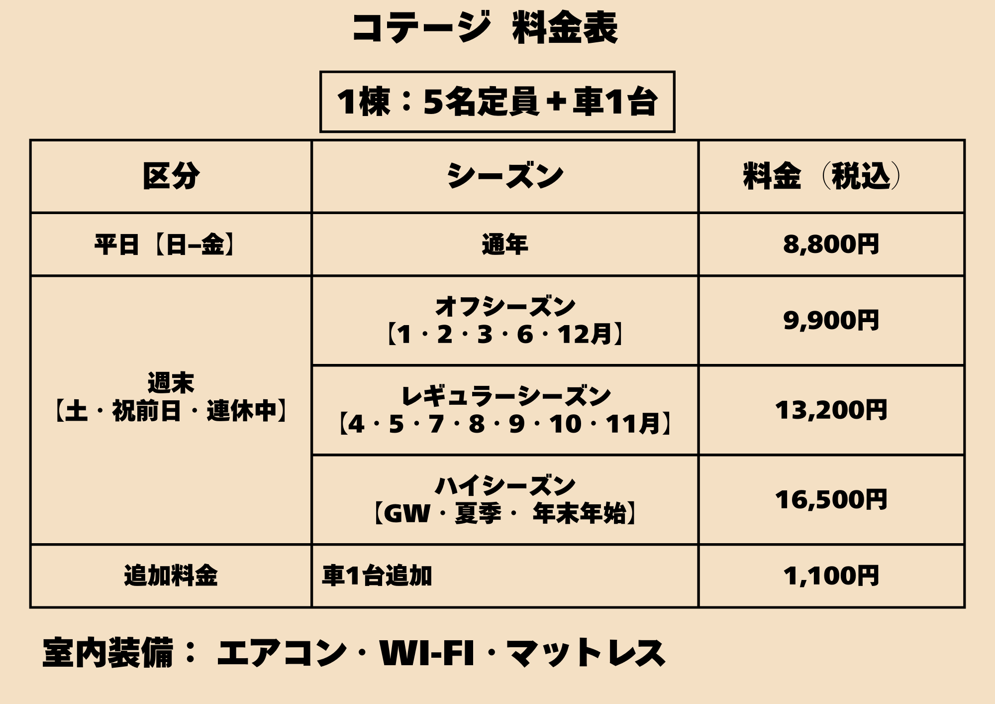 宿泊のみ(CAMP / COTTAGE ONLY)