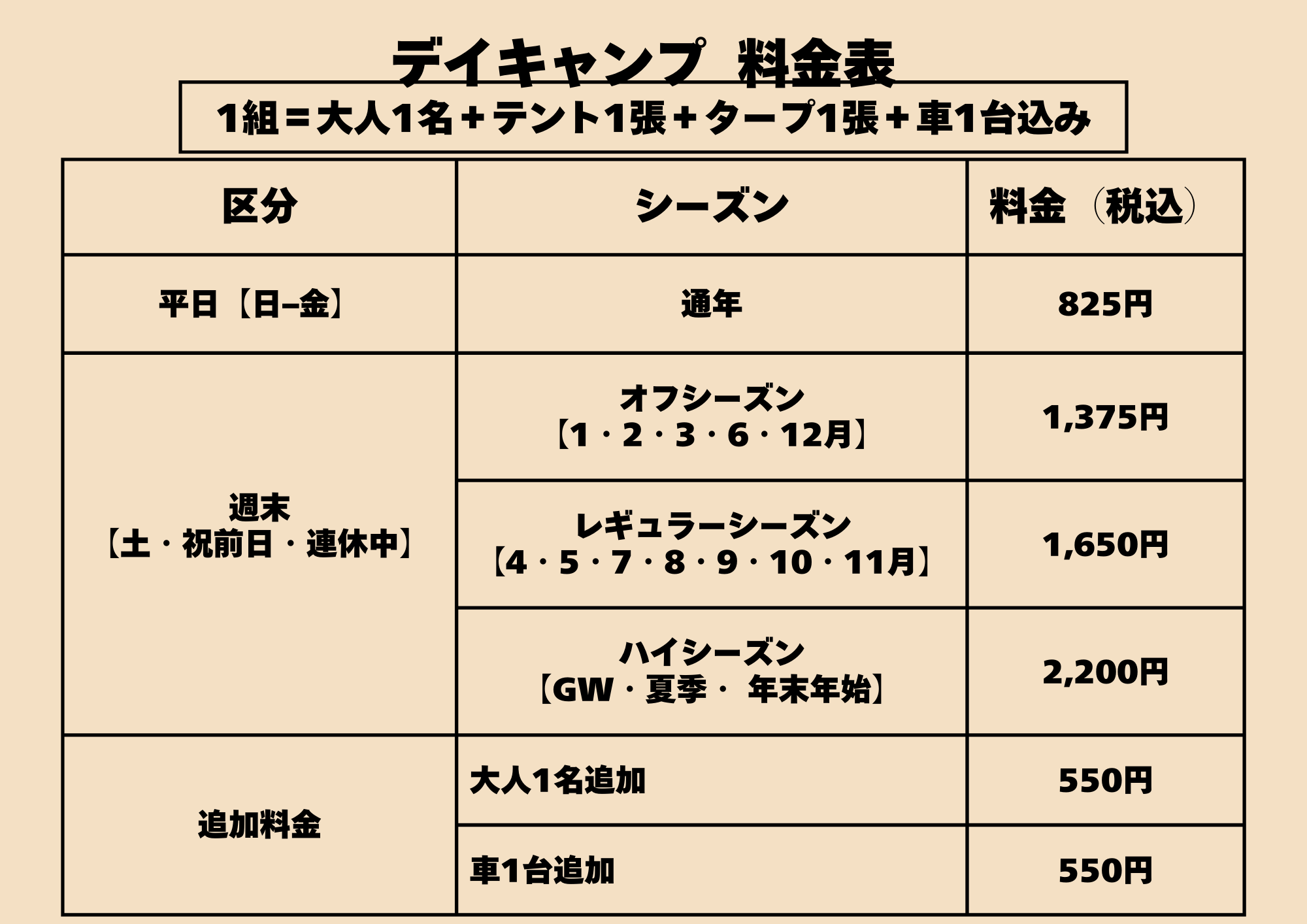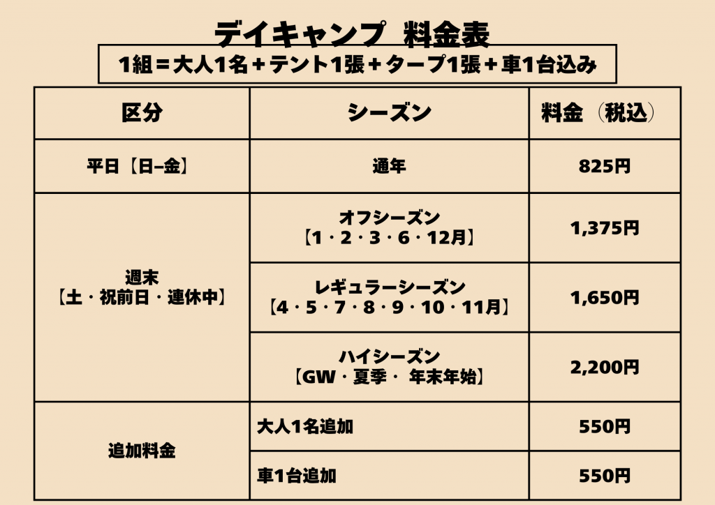 春のキャンプ、コテージ宿泊、日曜朝のご利用もぜひご検討ください。