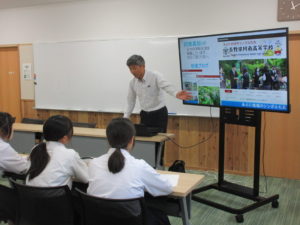 10月8日(水)に進路講話を行いました。阿南高等学校と飯田OIDE長姫高等学校に来ていただきました。阿南高校は、牧内校長より「高校は、自分を知り、自分の未来を見つけ出す場所」というお話を聞き、進路選択の上で大切なことを伝えていただきました。飯田OIDE長姫高校からは、本校卒業の先輩に来ていただき、高校生活の魅力、中学時代の学習の大切さについて話していただきました。 進路選択に向け貴重な時間となりました。