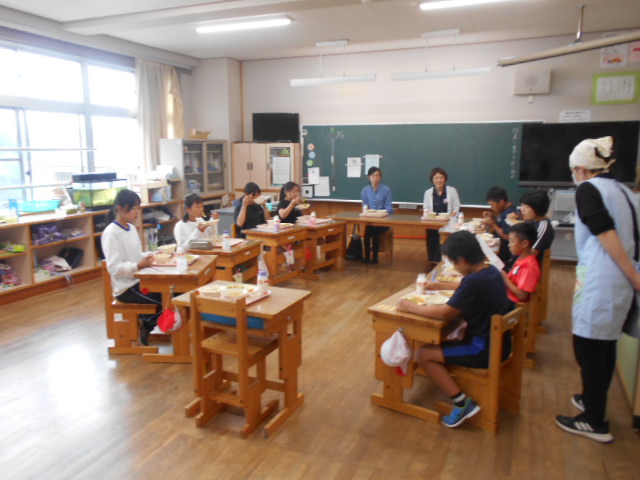 その後、子どもたちと一緒に給食を試食していただきました。