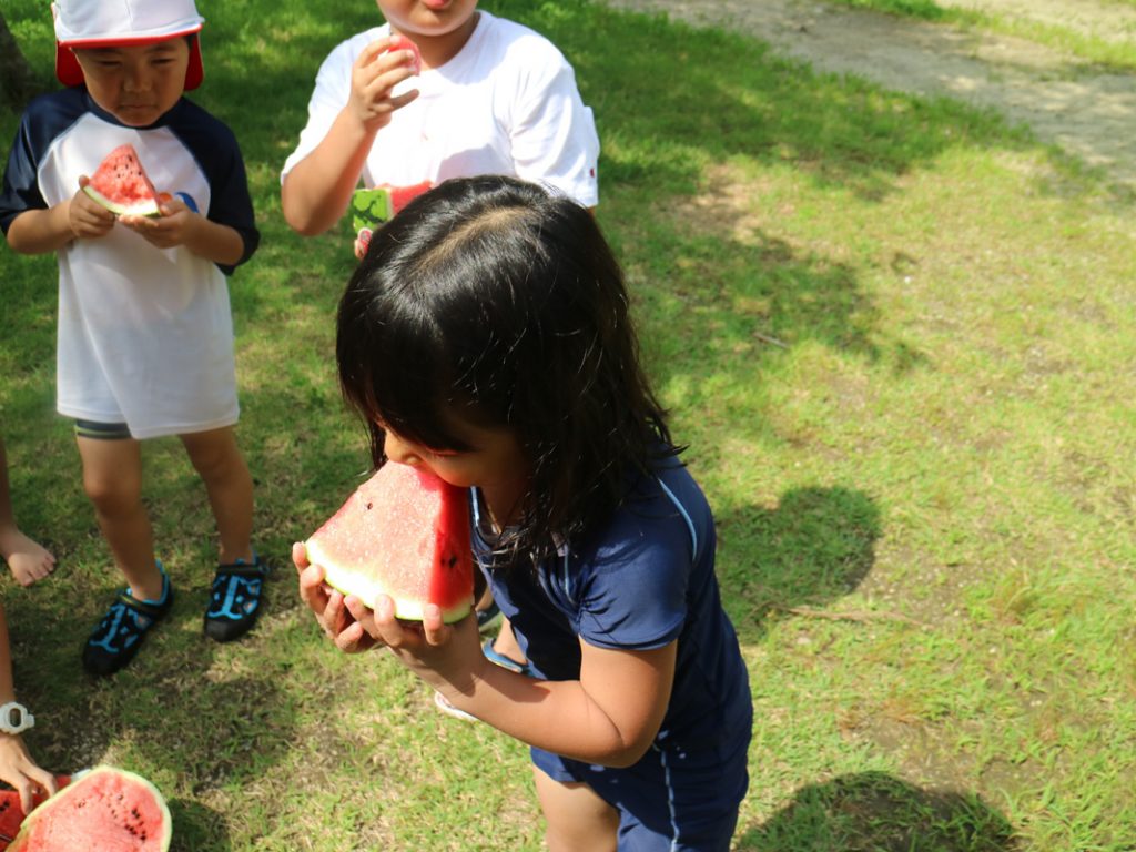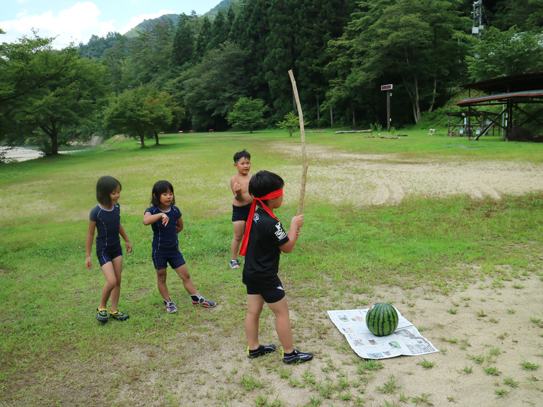 また、バームクーヘン作りやスイカ割りもして楽しい1日になりました。