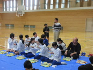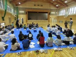 4月9日(火)に青空給食が行われました。残念ながら雨天だったので体育館に小中全員が集まって給食を食べました。小学校の児童会の企画があり、新しく着た先生方にインタビューをしながら楽しく小学生と一緒に給食を食べました。