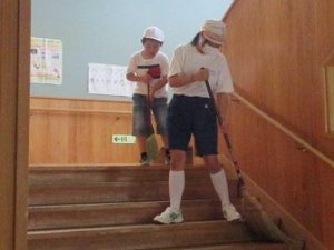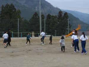 小学生と中学生が一緒に生活することになり、朝校庭で小学生と中学生が一緒に遊んだり、掃除を一緒に行ったりする様子が見られるようになりました。お互いの笑顔が増えてきたように感じます。