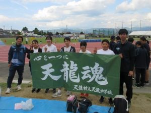 6月1日(土)に中体連南信地区陸上大会が伊那市陸上競技場で開催されました。3年生3名、2年生1名、1年生2名の6名が参加しました。3年生にとっては、中学校生活最後の大会となります。全員練習の成果を出し、自己記録更新を目標に全力で挑みました。結果は、一人ひとり満足感は違いましたが、先輩後輩関係なく、出場している仲間を一生懸命応援する姿はすばらしく、天龍中学校らしい姿でした。天龍魂を持って全力で挑んだ大会となりました。