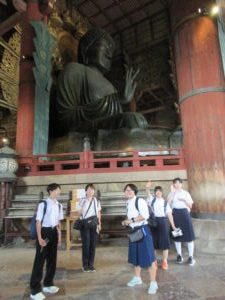 6月12~14日の3日間、3年生は修学旅行に行ってきました。初日が奈良、2日目、3日目は京都を中心に見学をしました。特に2日目は、4人で目的地、移動手段を全て決め、ICカードを活用し、自分たちの力で1日の見学をしました。不安もありましたが、ほぼ予定時刻に最終目的地の京都タワーに4人とも笑顔で到着しました。歴史の建造物に驚き、感心し、京都ならではの体験をし、鹿にも追いかけられ、3日間充実した旅行になりました。何といっても4人のチームワークのよさのおかげだと感じました。