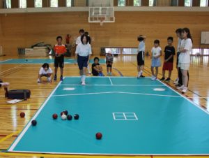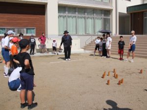 9月7日(土)にPTA主催の健全育成大会が行われました。小中合同で実施しました。今回は、ニュースポーツ運動会として、ワンバウンドふらばーるバレーボール、ボッチャ、モルックを行いました。小学生、中学生、PTAの混合のチームを作り、ルールを確認しながら楽しみました。モルック名人、ボッチャ名人が現れ、年齢関係なく楽しむことができました。