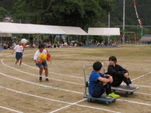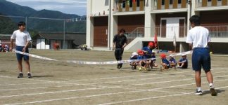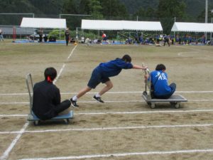 5月31日(土)に村民大運動会が行われました。今年度は、昨年よりも少し種目数が増え、村民の方の参加種目が増えました。小学生は、練習をたくさんした表現、かけっこ、全校リレー、綱引きを行いました。中学生は、運動会の裏方を務めたり、中学生種目(障害物リレー)を行いました。また、小中合同種目では借り物競争を行いました。その他に一般種目に、村民として児童生徒職員も一緒に参加し、村民運動会を楽しみました。お昼は、カレーライスがふるまわれました。