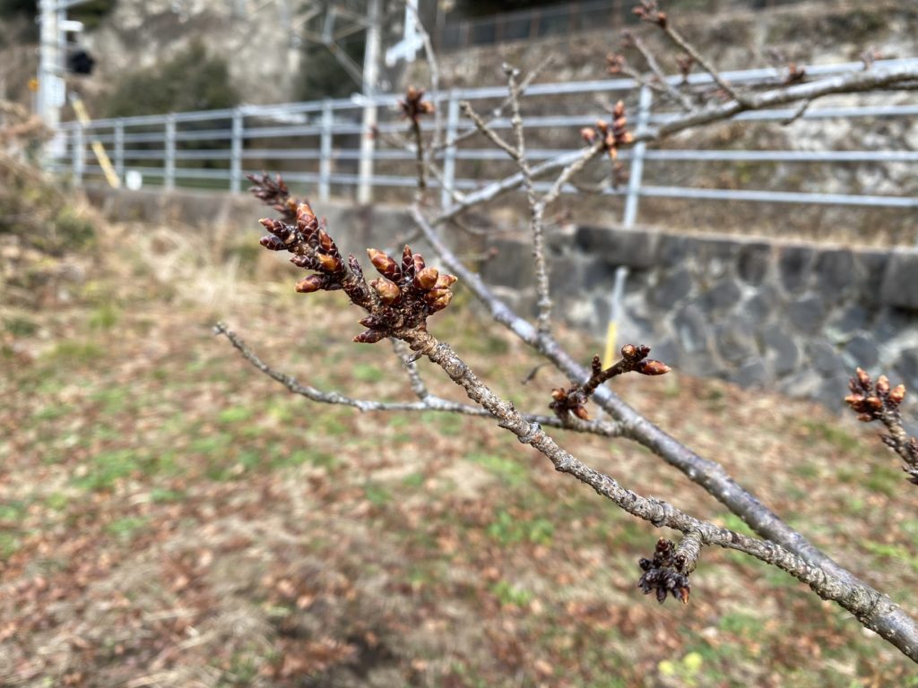 JR伊那小沢駅の構内にある約5本の「カンザクラ」は、信州でもいち早くピンク色の花を咲かせ、春の便りを告げてくれます。