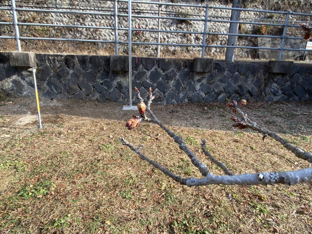1936(昭和11)年に三信鉄道の伊那小沢駅が開業したときの記念として三本のカンザクラが植えられたとされています。