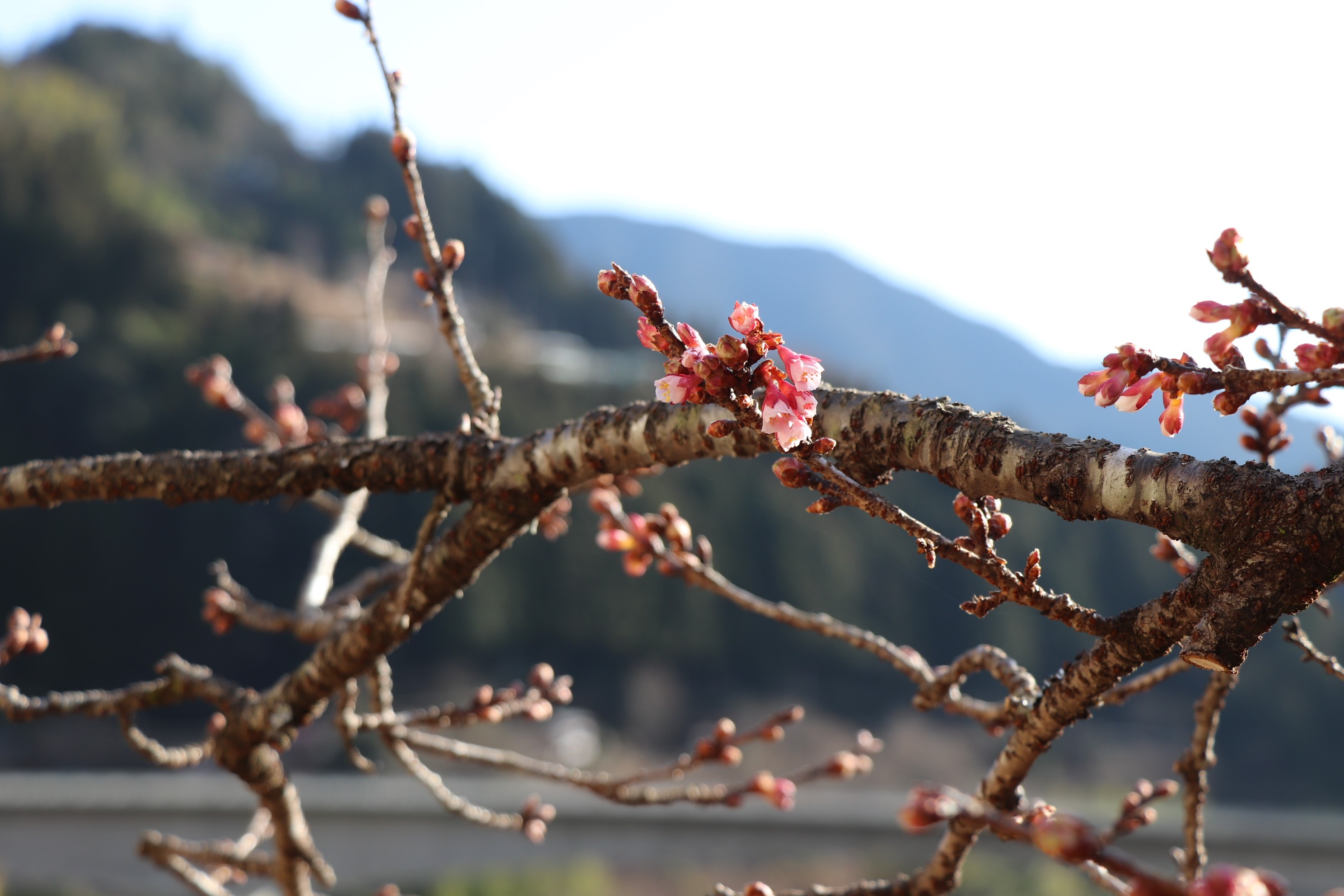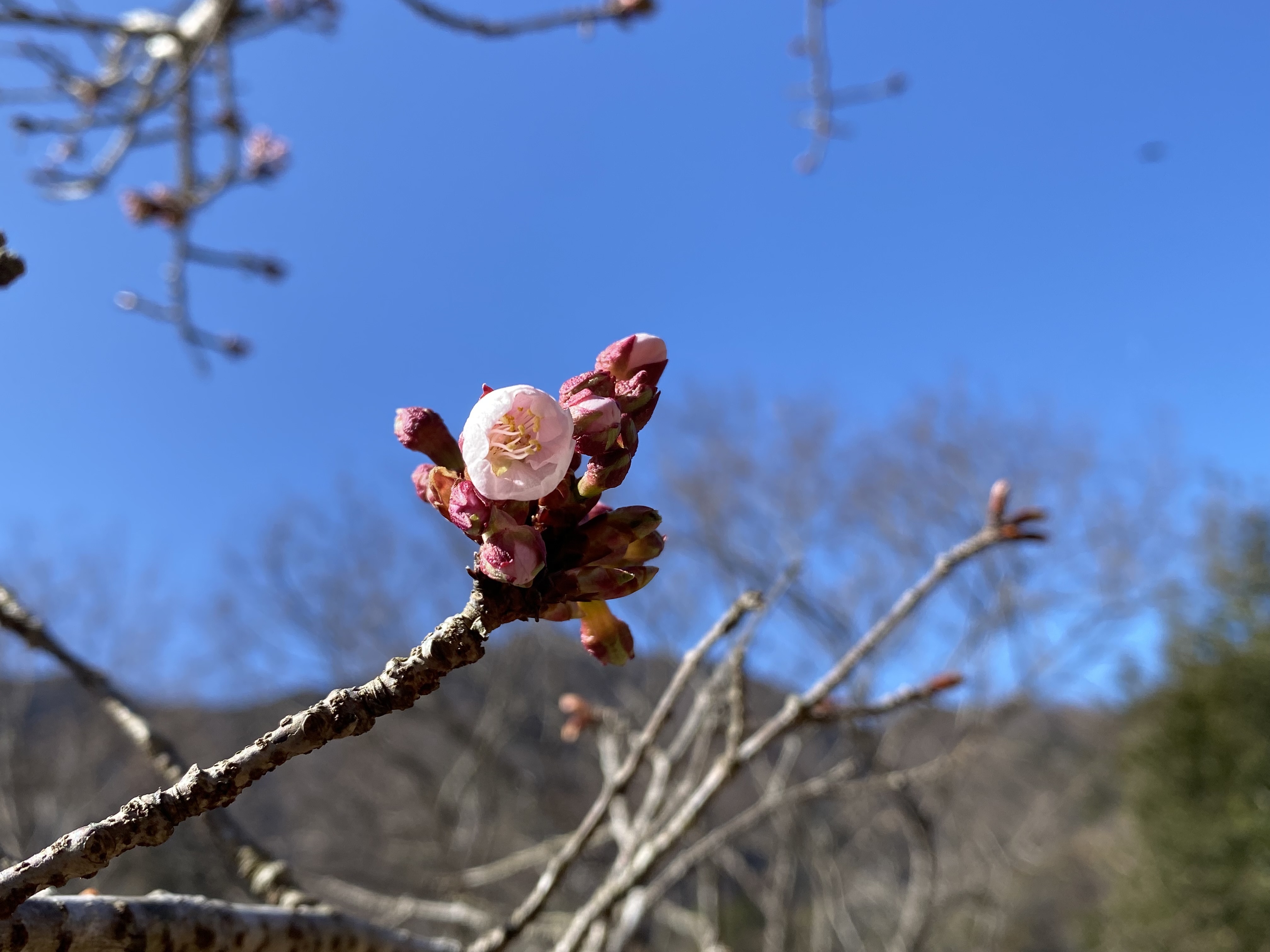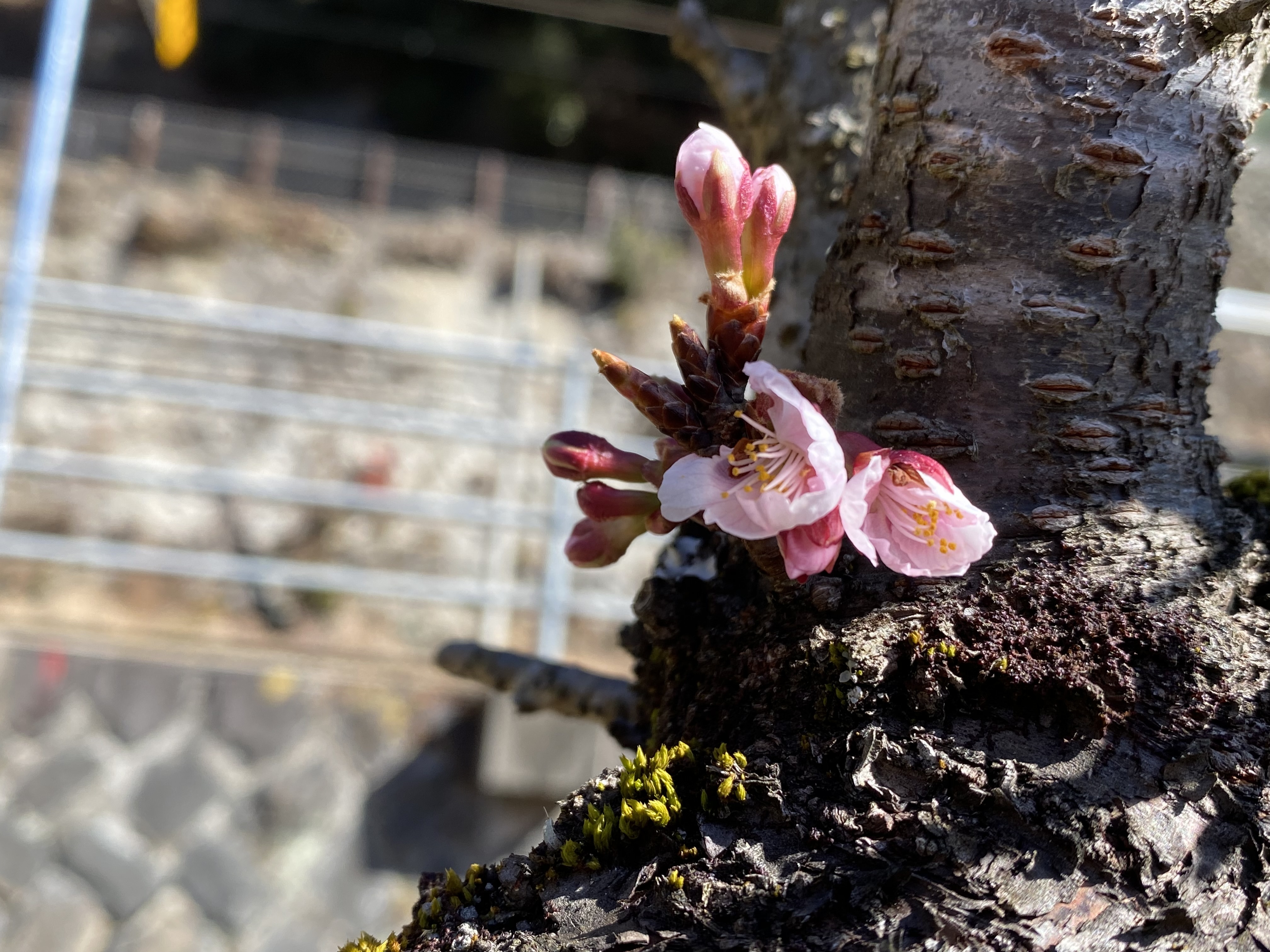 JR伊那小沢駅構内にある「カンザクラ」の開花を確認しました! 昨年と比べて2日ほど遅い開花宣言となります! 見頃は3月上旬から下旬となります。