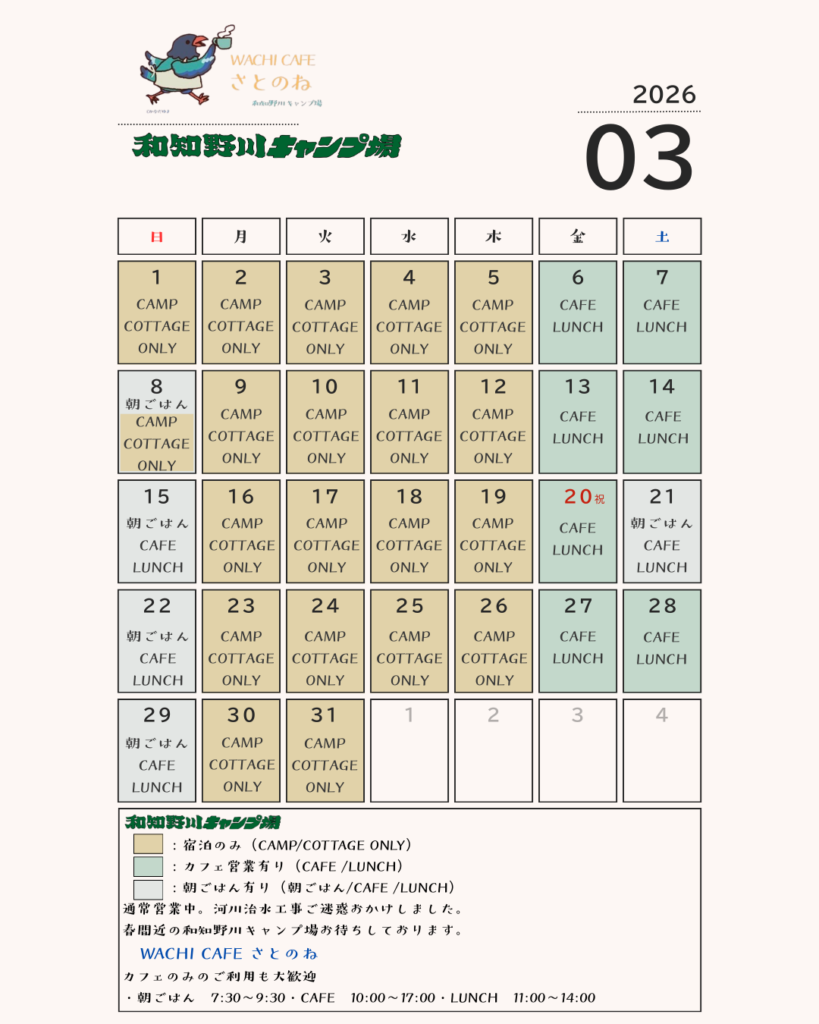 WACHI CAFE さとのねも営業日を設定しています。