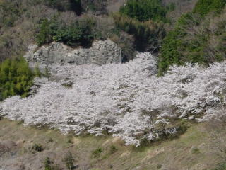 JR飯田線伊那小沢駅からも見えますが、駅から天竜川にかかる水神橋を渡ったところの「ニセンジふれあい館」の下、一帯に平成元年頃地域の人たちが植樹した約40本のソメイヨシノが広がっています。お弁当を持ってゆっくりお過ごし下さい。