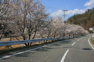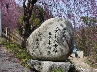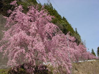 電源開発(株)の管理道路沿いに50本のしだれ八重桜が植樹されています。