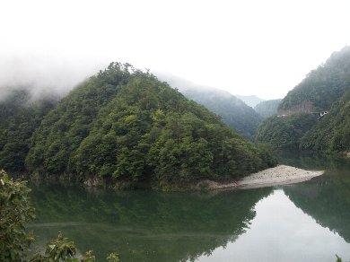 平岡ダムができるまでは、その急流が岸壁とぶつかり合い、川の流れを一旦上流へ押し戻すように周囲を削り取り、あたかも「信濃の国が恋しい」と訴えるがごとく筏の向きを変えてしまいました。