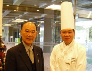 ホテルニューオータニ東京の西口章二宴会料理長さんにも「畑のフォアグラ」と絶賛していただきました。(写真左は大平天龍村長)