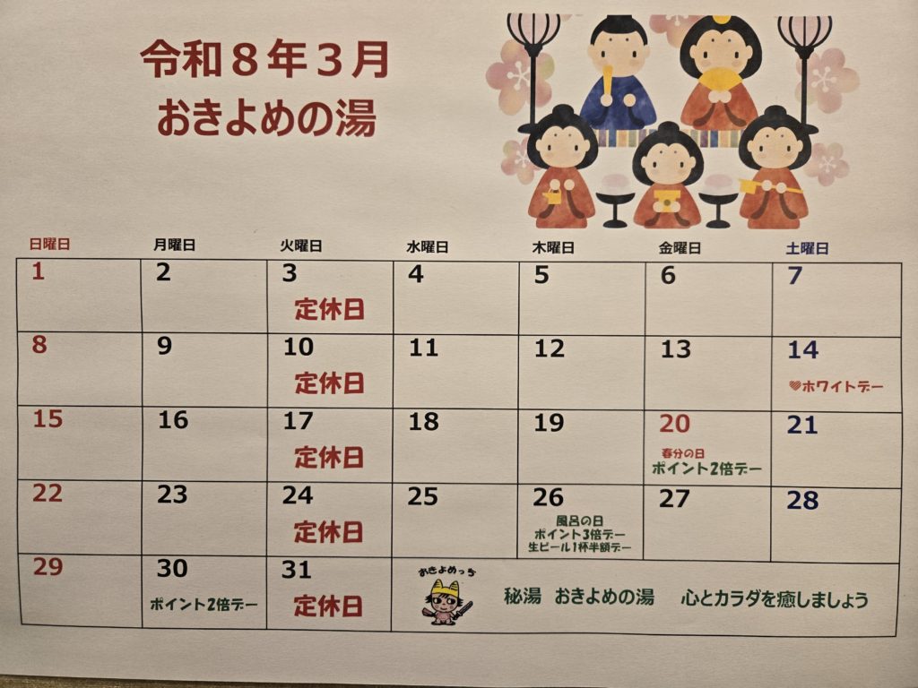 日頃よりおきよめの湯をご利用いただきありがとうございます。